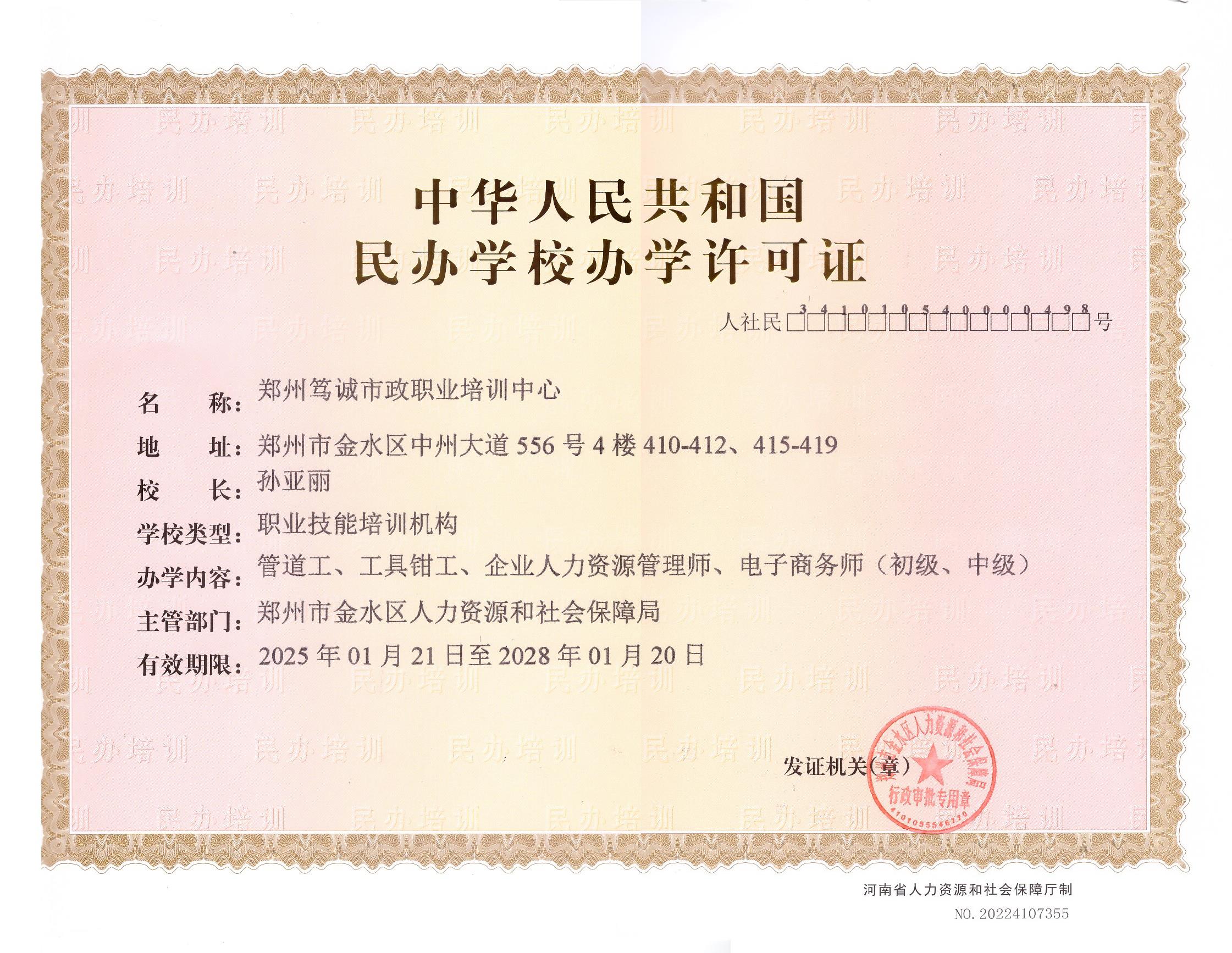 郑州笃诚市政职业培训中心成立于2009年,坐落于郑州市金水区中州大道556号,是由郑州市劳动和社会保障局、民政局批准设立的民办培训机构。是通过河南省建设厅考核认定的培训机构。 ★河南省住房城乡建设行业建筑工人职业培训机构; ★河南省建筑与市政工程施工现场专业人员的培训基地。