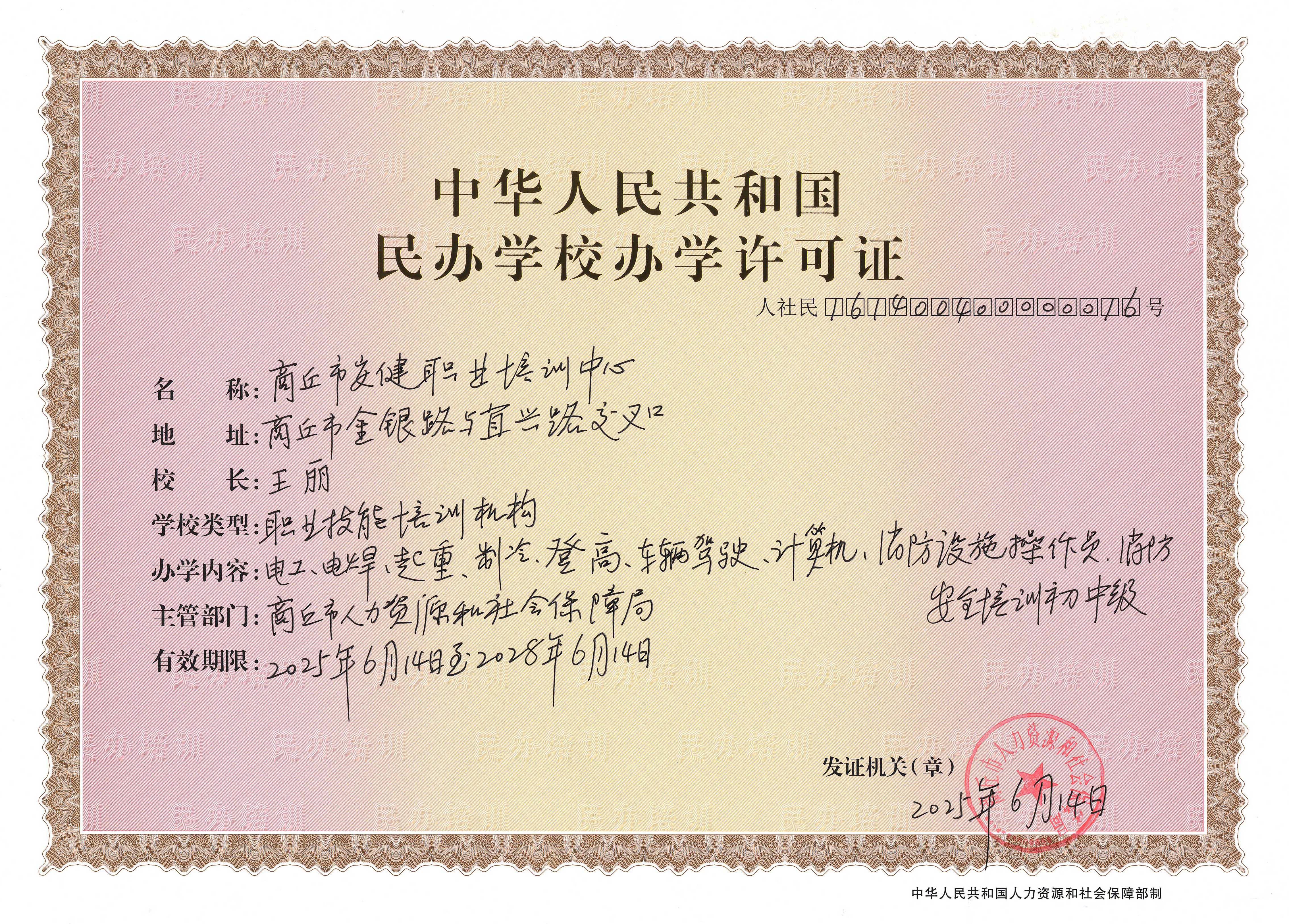 商丘市安健职业培训中心,位于商丘市金银路和宜兴路交叉口,东临商丘市主干道神火大道,北临文化路。交通十分便利,经商丘市劳动和社会保障局批准(商劳社民1614004000016)、商丘市民政局注册的社会力量办学机构(商民民证字第060015号);企业代码为69219489-6;中心实行独立的财务核算。